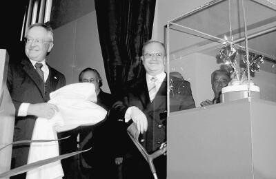 Als „Oscar für besonderes bürgerschaftliches Engagement“, bezeichnet sein Stifter Dr. Friedrich E. Rentschler den „Laubü“. Die Namen derer, die die Sanierung unterstützt haben, sind im Boden der Skulptur eingraviert. Das Kunstwerk stellt das dreidimensionale Laupheimer Stadtwappen dar; aus den drei Bergen wachsen drei Laubblätter. Die Auszeichnung in Gold wird Seltenheitswert haben, wie Rentschler betonte. Kein Zweifel besteht allerdings daran, dass die nun Geehrten diese „Bürgertrophäe“ verdient haben. „Unser Kulturhaus ist eine Wucht. Durch die Sanierung von Pumphaus und Schlosstürmen hat das Ambiente sein i-Tüpfelchen bekommen“, so Rentschler.